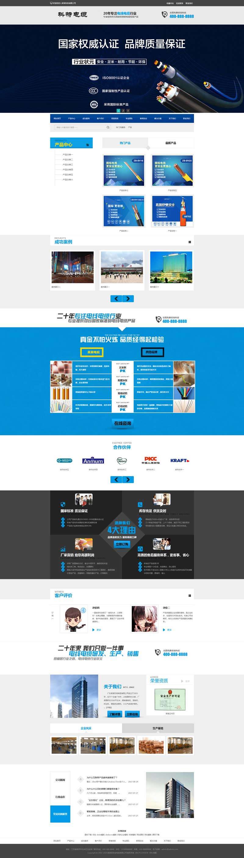 蓝色的电线电缆科技公司,铝合金电缆生产销售企业网站织梦源码dedecms下载。包含:产品中心、成功案例、客户评价、荣誉资质、专业团队、新闻动态、解决方案、关于我们、联系我们等模块页面。
