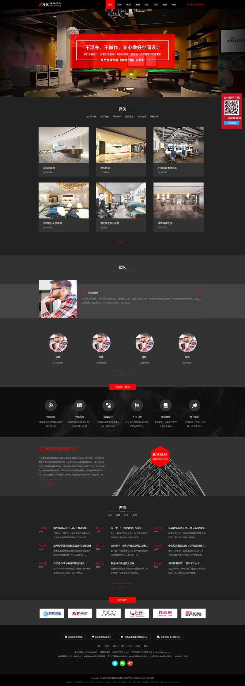 一款红色和黑色搭配风格的办公写字楼/餐厅酒楼/娱乐会所/别墅豪宅/公共空间/装修实景室内空间设计公司网站响应式织梦模板dedecms下载。包含:设计、优势、案例、团队、关于、资讯、联系等模块页面。