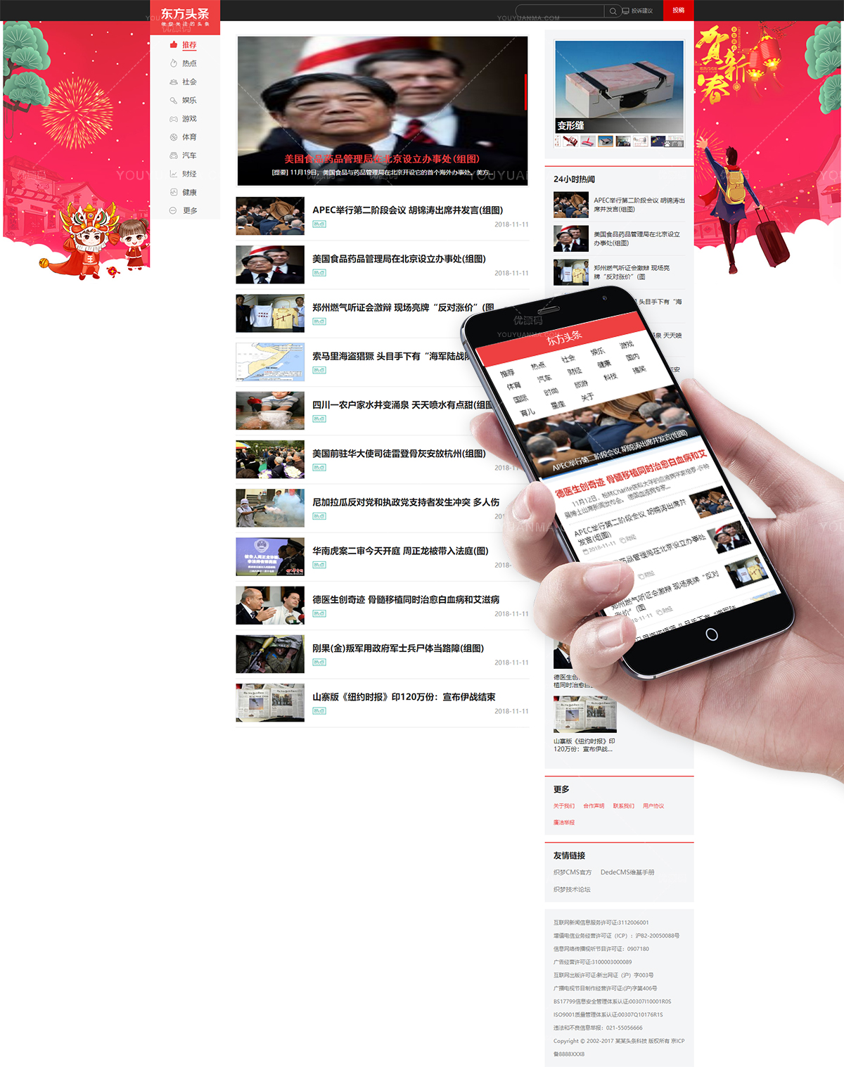dedecms仿东方头条新闻资讯类织梦模板(含移动端带投稿)织梦模板 免费下载